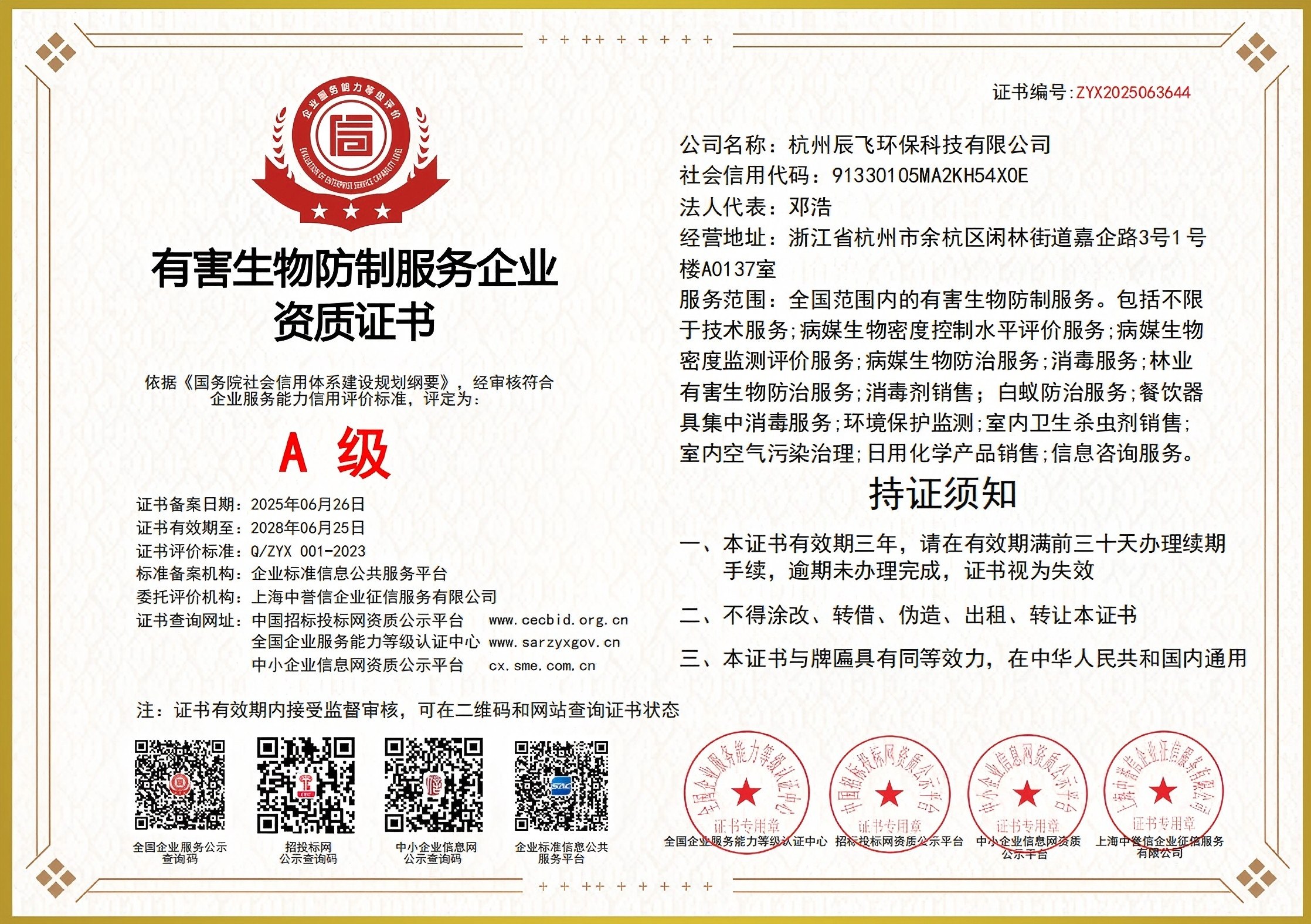 杭州辰飛環??萍加邢薰臼且患覍I的PCO有害生物防治服務機構。是經杭州市工商局注冊登記、杭州市白蟻防治管理所、PCO協會批準的城市害蟲綜合治理消殺公司,是集除四害、白蟻消殺、除蟲、消毒殺菌、室內空氣污染治理、藥械銷售于一體的大型專業杭州有害生物防治科技有限公司。主要從事新建、擴建、改建、裝飾裝修單位建筑物的白蟻防治和白蟻預防工程,同時從事工廠、酒店、企事業單位、住宅小區和家庭的”四害”消殺和白蟻防治服務,長期向各類型客戶提供杭州白蟻消殺、除蟑螂、除老鼠、除蟲、消毒殺菌等優質服務。 本公司自成立以來,秉承“誠信、敬業、高效、務實”的發展原則,以現...